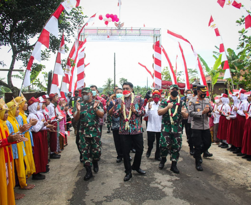 Bupati Magelang Zaenal Arifin didampingi Kasi Ter Kasrem Korem 072/Pamungkas, Kolonel Infanteri Gempar Sebayang dan jajaran Forkompimda saat mencanangkan Kampung Pancasila secara serentak di Desa Kalisalak. (Foto - ilham Dokpim)