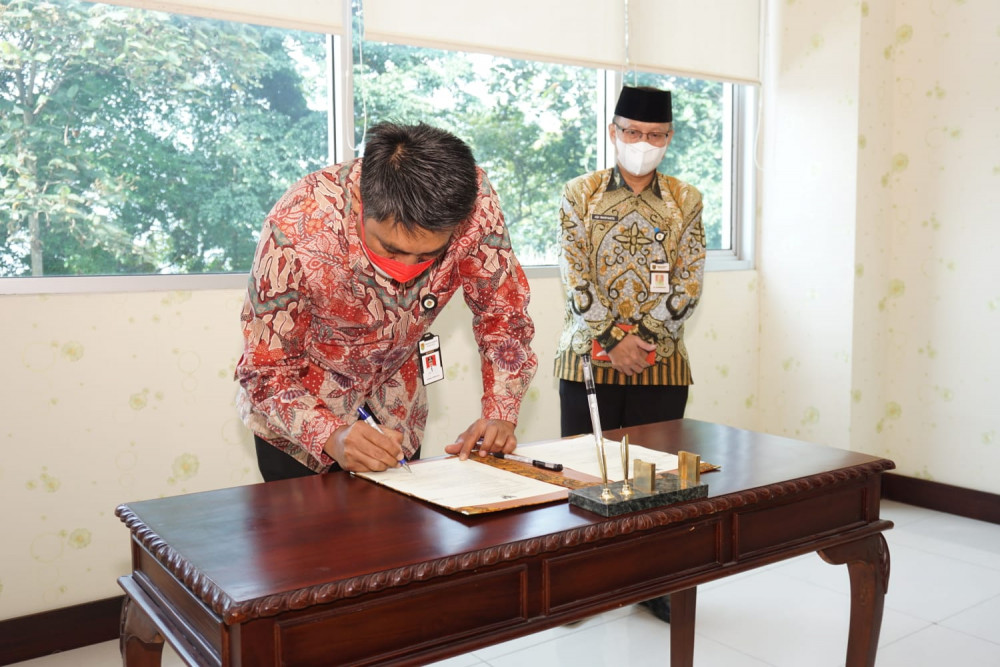 Bupati Magelang saat menyelenggarakan LKPD Tahun 2021 kepada Kepala Badan Pemeriksa Keuangan Perwakilan Provinsi Jawa Tengah, Ayub Amali mewakili Kabupaten/Kita lainnya.
