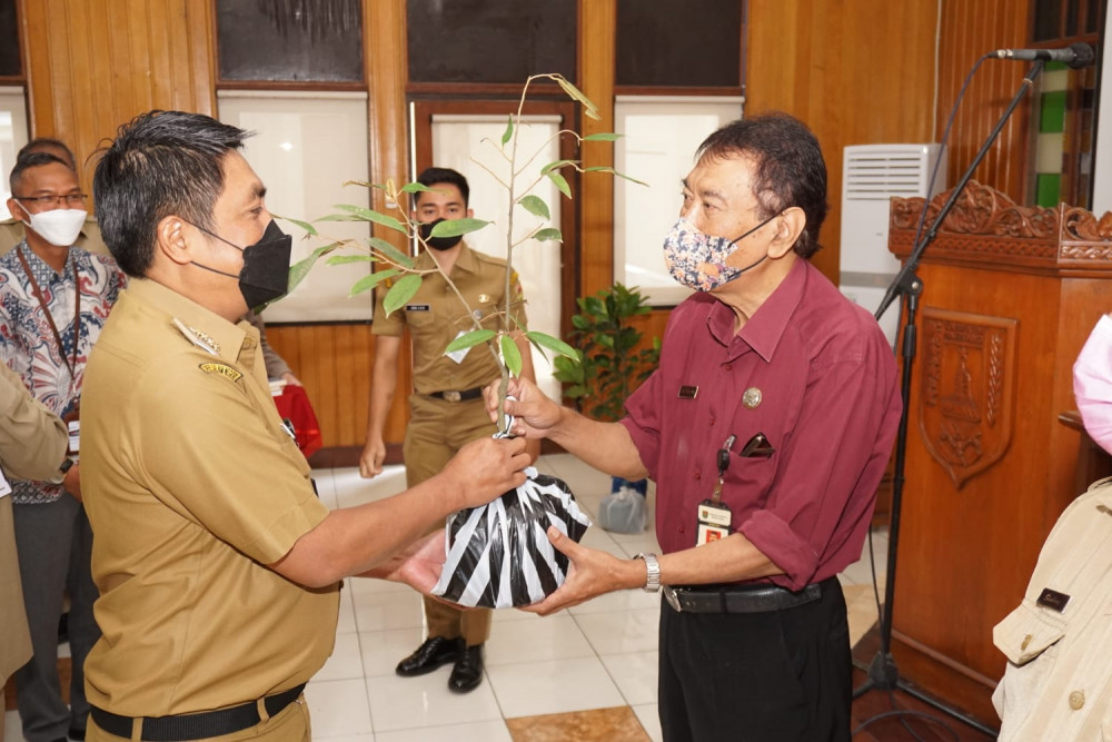 Pada kesempatan yang sama juga dilakukan penyerahan bibit tanaman dan buku dari para penerima SK Pensiun sebagai sedekah jariyah kepada masyarakat dan lingkungan.