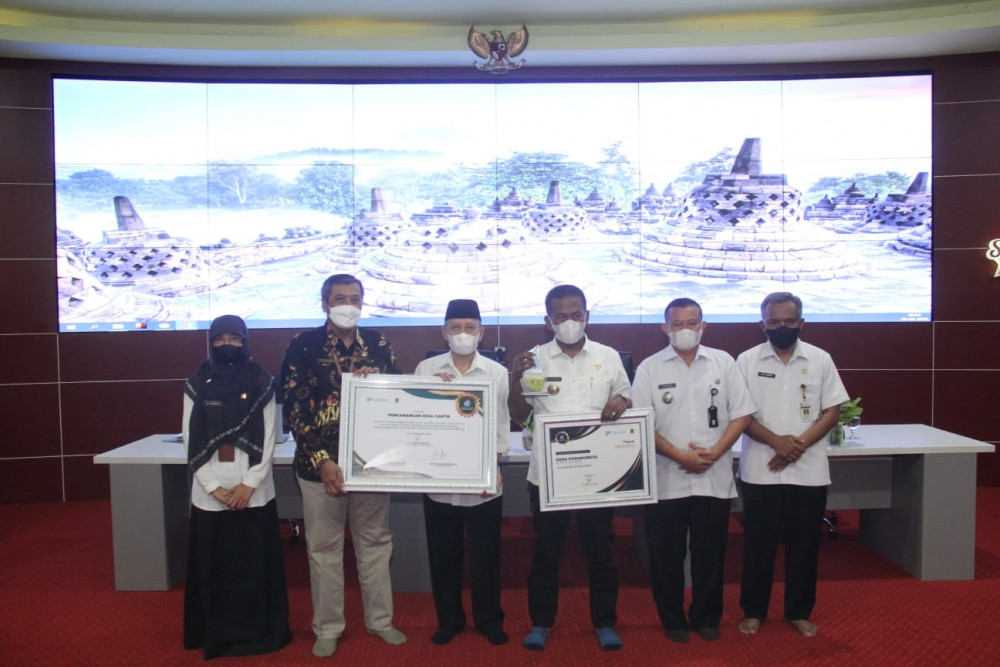 KOTA MUNGKID- Sekretaris Daerah Kabupaten Magelang, Adi Waryanto bersama Kepala Badan Pusat Statistik (BPS) Kabupaten Magelang Toto Desanto dan OPD terkait mencanangkan Desa Karangrejo, Kecamatan Borobudur sebagai Desa Cantik (Desa Cinta Statistik), Rabu (8/6/2022).
