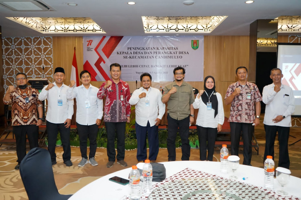 Asisten Pemerintahan dan Kesra Sekretariat Daerah Kabupaten Magelang, Nanda Cahyadi Pribadi didampingi jajaran Forkompimcam Candimulyo saat membuka kegiatan Peningkatan Kepala Desa dan Perangkat Desa Se-Kecamatan Candimulyo. ( Foto - Maha Dokpim )KOTA MUNGKID- Bupati Magelang diwakili Asisten Pemerintahan dan Kesra Sekretariat Daerah Kabupaten Magelang, Nanda Cahyadi Pribadi didampingi jajaran Forkompimcam Candimulyo membuka kegiatan Peningkatan Kepala Desa dan Perangkat Dese se-Kecamatan Candimulyo di Khas Tugu Hotel, Yogyakarta, Jumat (5/8/2022).