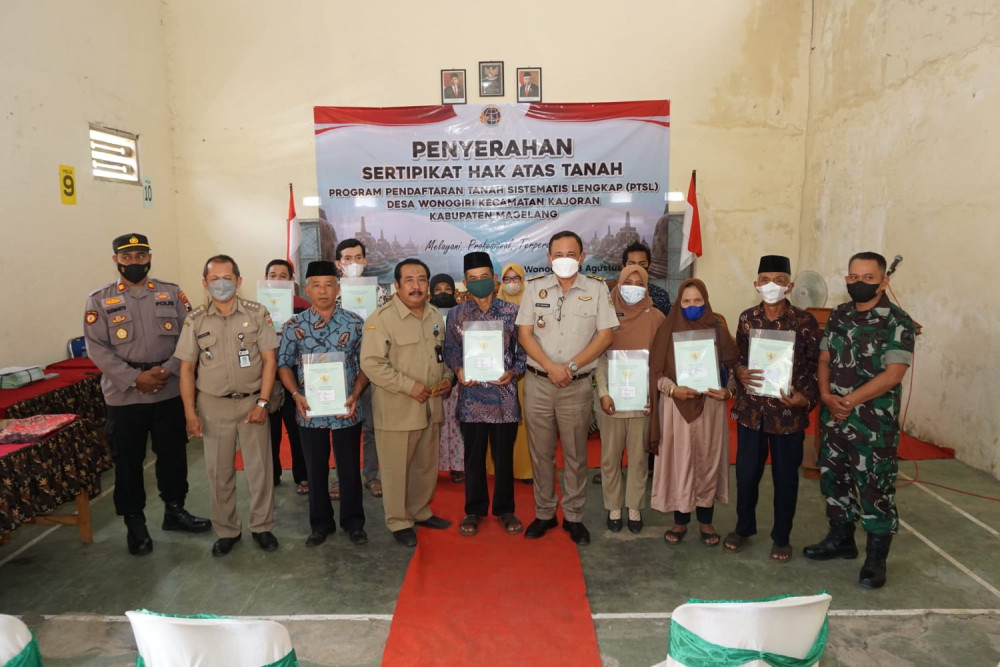 "Atas nama pribadi dan Pemerintah Kabupaten Magelang menyampaikan apresiasi dan penghargaan yang tinggi kepada Kepala ATR/BPN Kabupaten Magelang, kelompok masyarakat dan Pemdes Wonogiri atas kerjasamanya dalam pemrosesan sertifikat program PTSL sehingga bisa terselesaikan dan berjalan lancar," ucap, Asfuri.